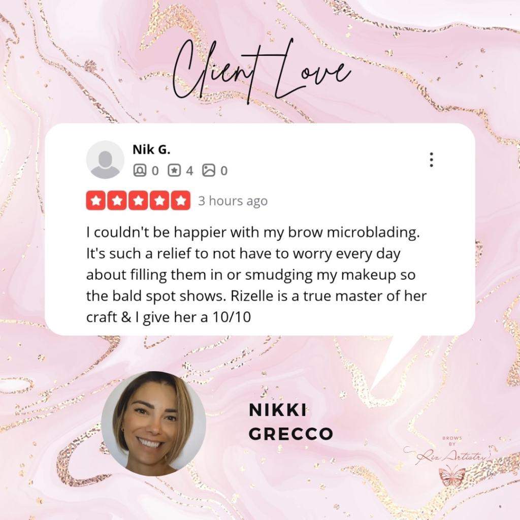 Rizelle combines her lifelong passion for art with a mission to help women feel confident and effortless every day. She specializes in Microblading, a precise technique designed to create fuller, natural-looking, and beautifully symmetrical brows.